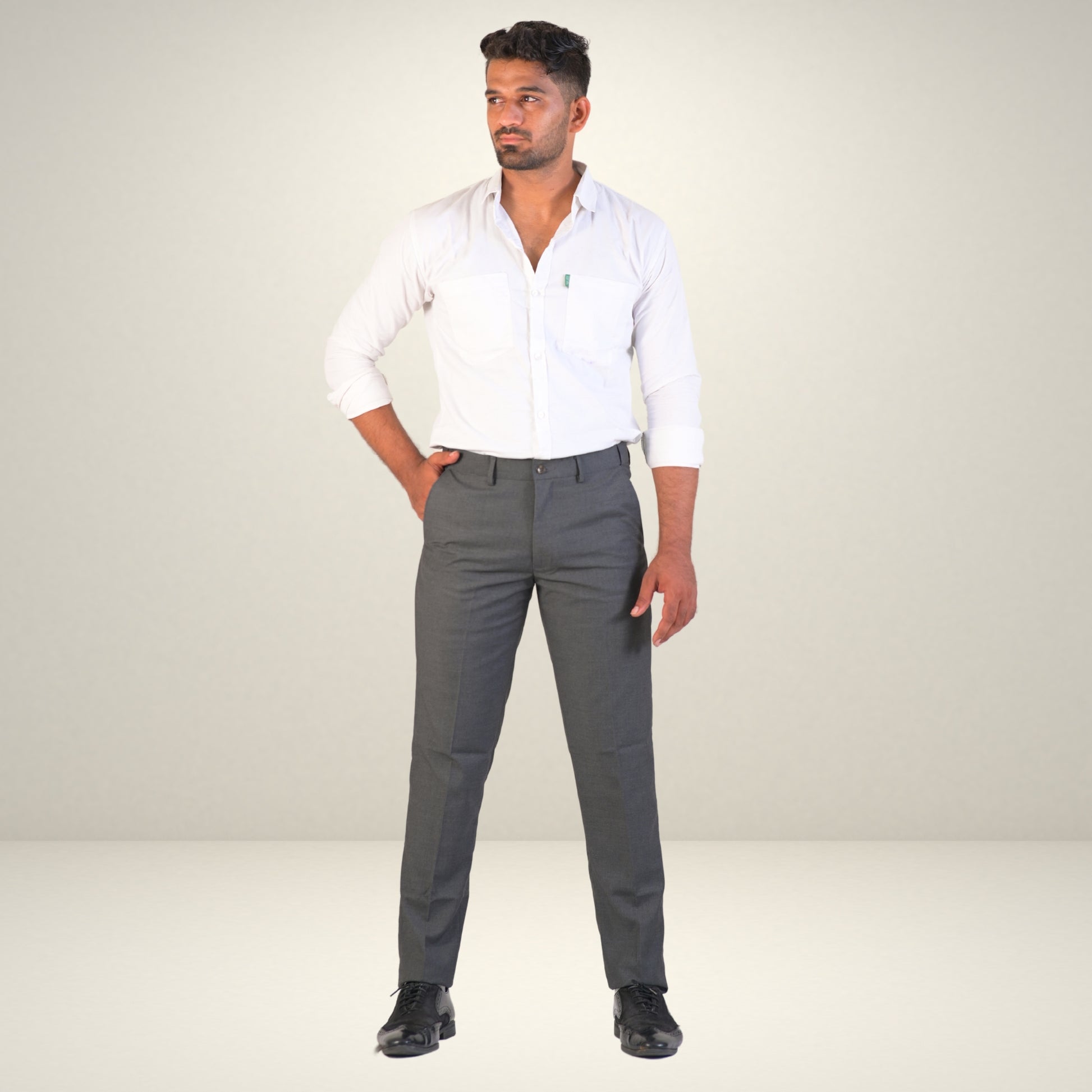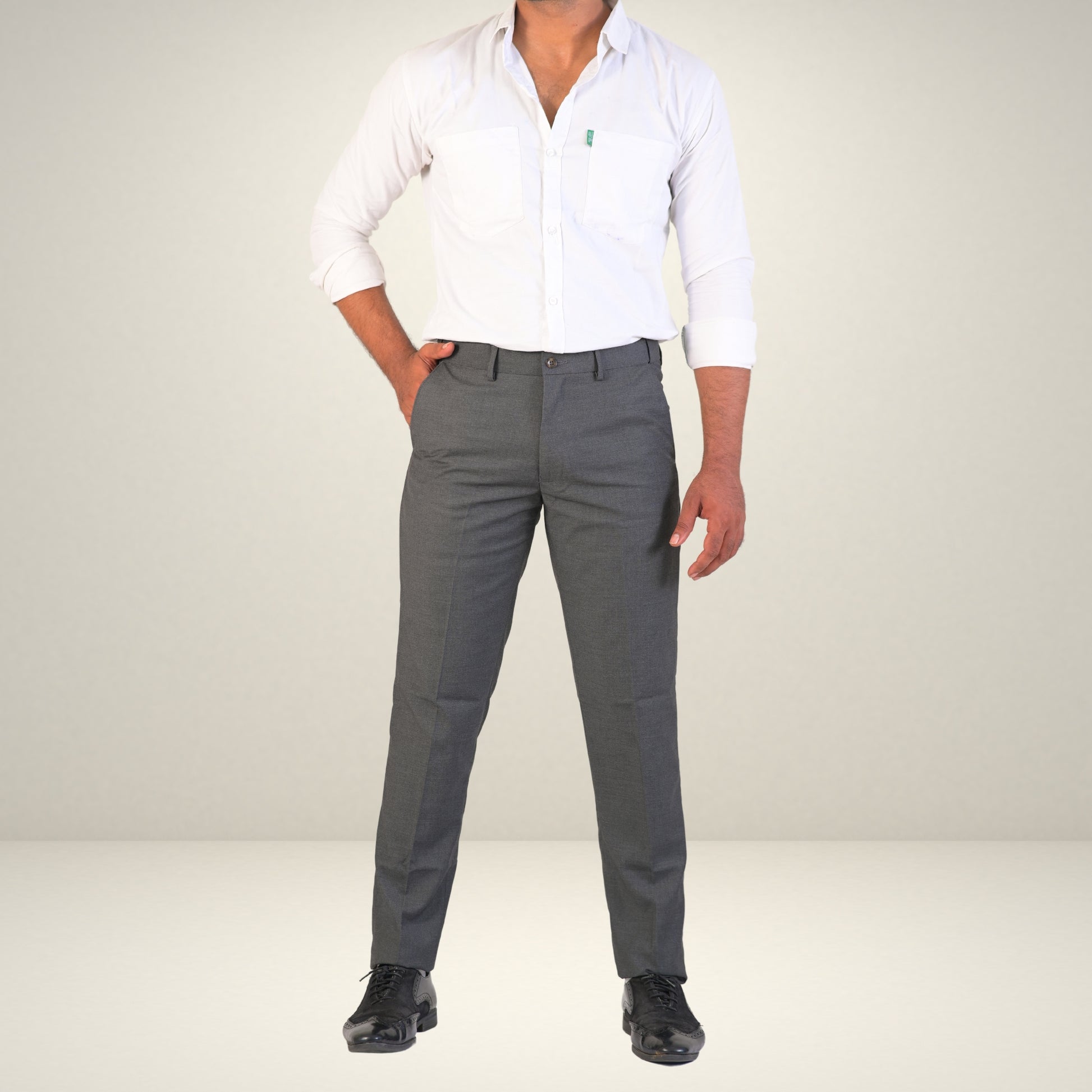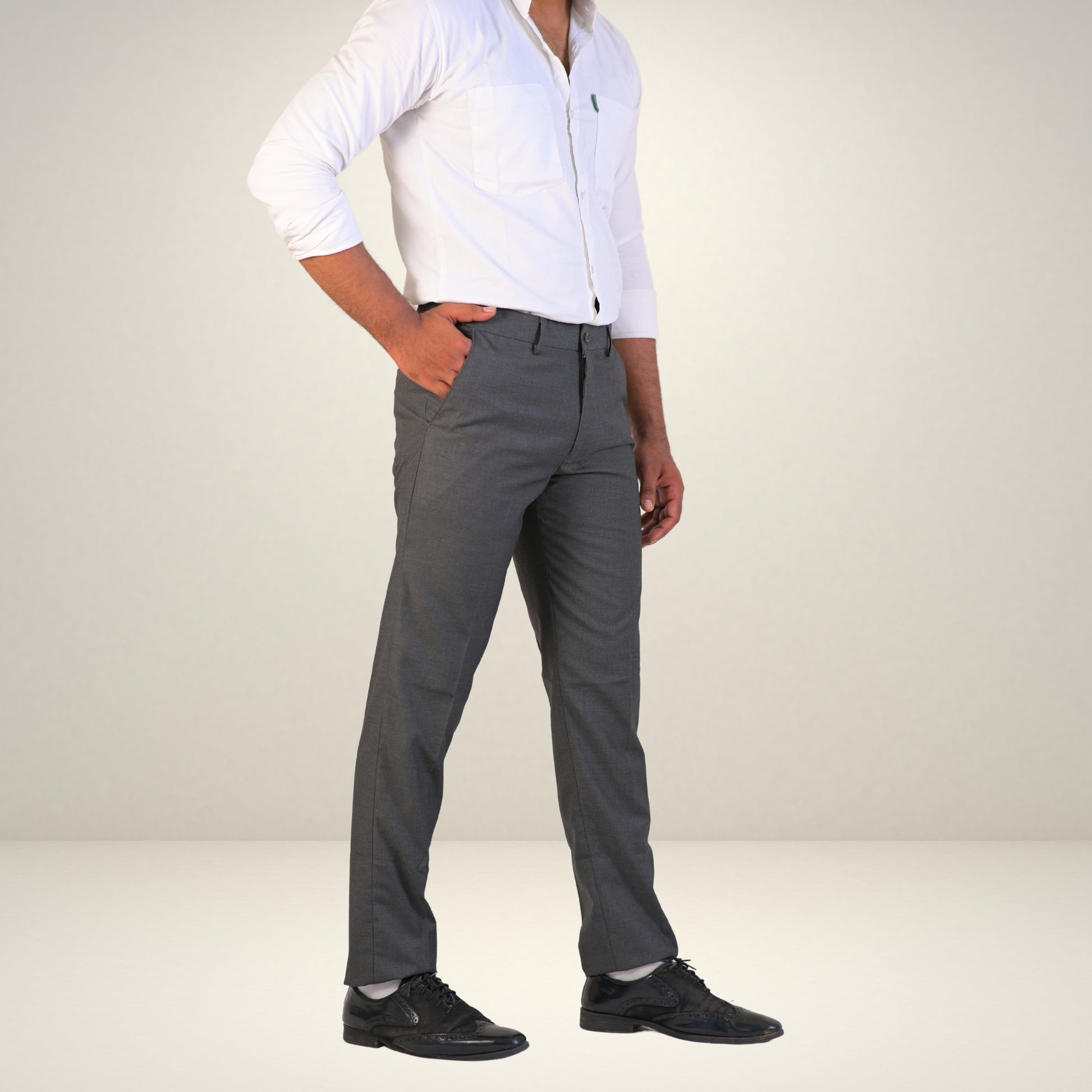 Men's Grey Formal Flexi Waist Pants
